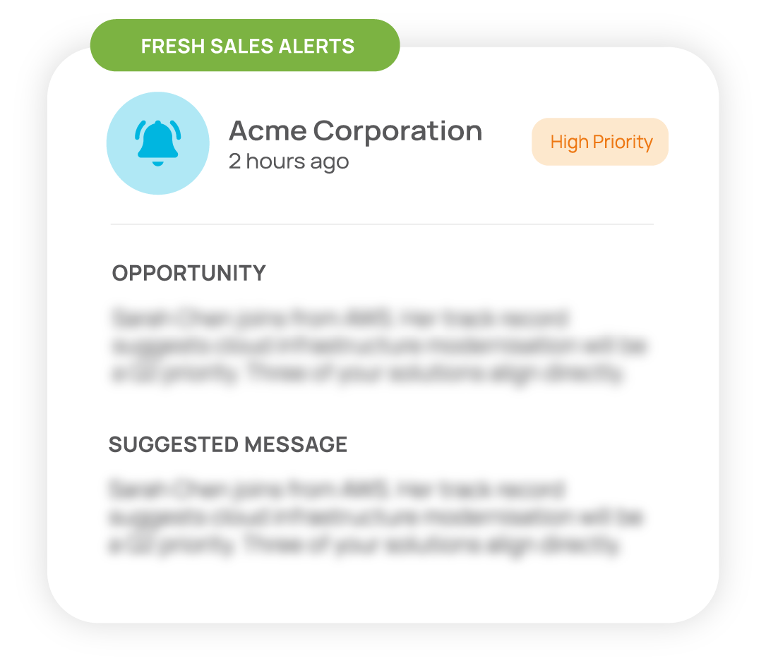 You don’t get “an intent score.” You get a clear, human-relatable assessment of what changed, why it matters, what to communicate and the specific people to communicate with. The right message at the right time.